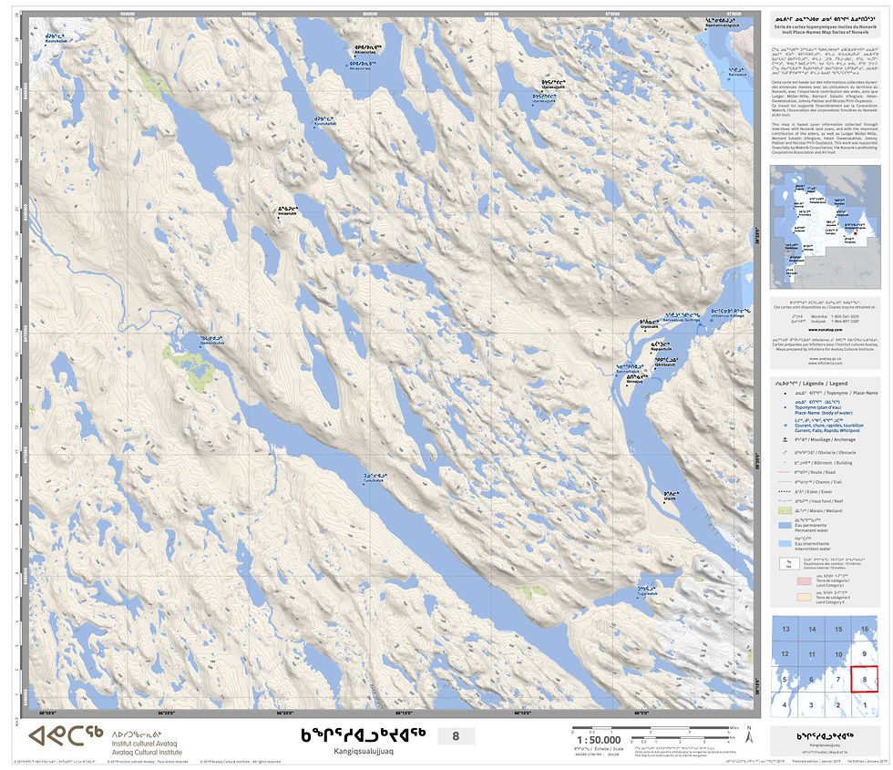 640 Maps containing the Inuit Place-Names over a detailed topographic base cartography.